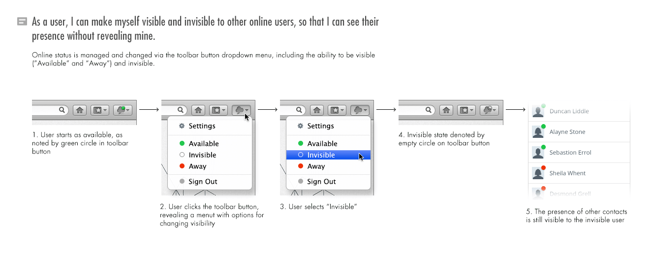 Viele Informationen findet man derzeit noch nicht zum Talkilla-Projekt von Mozilla. Im hauseigenen Wiki schreibt Mozilla, dass Talkilla WebRTC nutzt, um die Browsing-Erfahrung um Echtzeitkommunikation zu ergänzen. Ein konkreteres Bild ergibt sich durch die kürzlich in diesem Zusammenhang veröffentlichten Mockups. Diese zeigen Kontakte in einer Sidebar und Möglichkeiten, seinen Online-Status einzustellen, mit Kontakten zu chatten und Videotelefonie durchzuführen sowie das Versenden von Dateien und Webseiten-Inhalten.