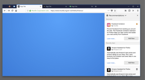 Ich gehe davon aus, dass sich Mozilla ganz genau überlegen wird, was sie empfehlen. Das Beispiel mit Amazon würde mich beispielsweise auch deswegen Sinn ergeben, weil Amazon ein Partner von Mozilla ist, deren Suchmaschine wird ja auch direkt mit Firefox ausgeliefert. Im Nightly-Blog von Mozilla habe ich als Beispiel die Facebook Container-Erweiterung gesehen, die von Mozilla selbst ist.