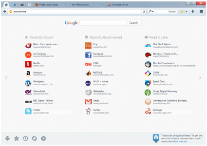 Mozilla plant die Zusammenlegung der Standard-Startseite about:home und der Standard-Seite beim Öffnen neuer Tabs, about:newtab. Bereits im ersten Teil dieser Artikel-Serie wurden entsprechende Entwürfe gezeigt. Mittlerweile gibt es neue Entwürfe, welche neue Möglichkeiten der Anpassbarkeit zeigen.