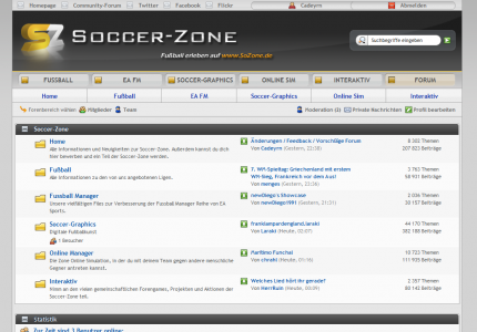 Die Soccer-Zone und Soccer-Graphics setzen ihre lange Zusammenarbeit ab sofort in einem gemeinsam Portal rund um den Fußball fort. Die Soccer-Zone bietet künftig alles zum FUSSBALL MANAGER von EA Sports, umfangreiche Datenbanken und Berichterstattungen zu den nationalen und internationalen Top-Ligen sowie alles zur digitalen Kunst des Fußballs. Soccer-Graphics ist ein seit vielen Jahren erfolgreich arbeitendes Grafik-Projekt, bei dem Signaturen, Wallpaper, Avatare und vieles mehr für euch erstellt werden. Zusammen mit der Soccer-Zone entsteht eines der umfassendsten, nicht-kommerziellen Fußball-Portale im deutschsprachigen Internet mit über 7 700 registrierten Benutzern.