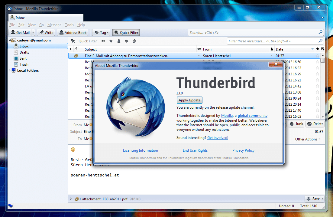 2012 – heute: Thunderbird 10.0 bis Thunderbird 15.0